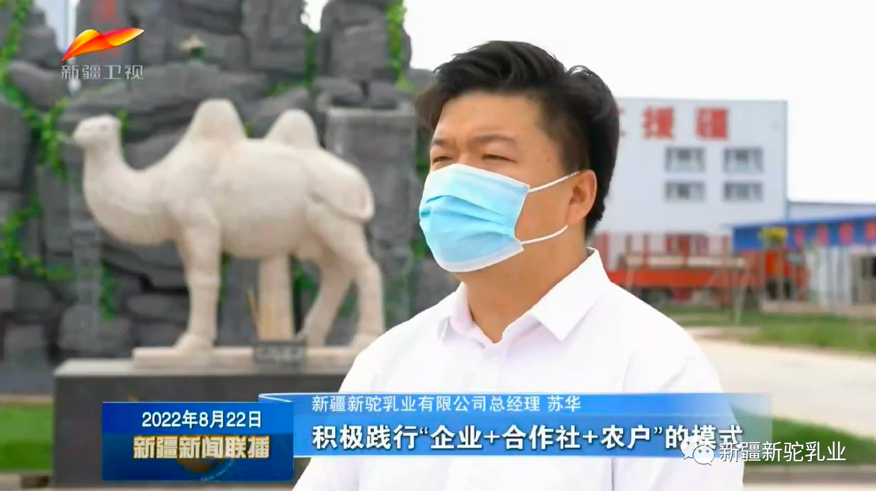 2022年8月22日19時(shí)30分,在新疆衛(wèi)視漢語(yǔ)、新疆二套維吾爾語(yǔ)、三套哈薩克語(yǔ)并機(jī)直播的《新疆新聞聯(lián)播》,對(duì)新疆新駝乳業(yè)有限公司在疫情期間,開足馬力生產(chǎn)確保完成全年目標(biāo)任務(wù),最大限度減少疫情對(duì)牧民養(yǎng)殖的影響,協(xié)助牧民科學(xué)飼養(yǎng)駱駝,助力鄉(xiāng)村振興進(jìn)行報(bào)道。 短短一個(gè)多月的時(shí)間,這是《新疆新聞聯(lián)播》第三